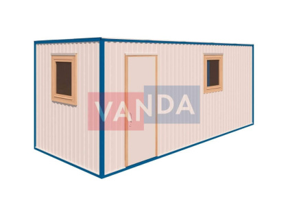 Типовая недорогая строительная бытовка эконом-класса выполняется из металлического профиля с обшивкой из оцинкованного листового металла. Пол изготовлен из ДСП влагостойкого 36 мм , утепление – из фольгированного пенофола. Внутренняя обшивка выполняется из вагонки или ДВП.Контейнер бытовки комплектуется дверью с удобным замком и окном с двойным остеклением. Окно довольно широкого размера позволяет осуществлять визуальное наблюдение за прилегающей территорией.
