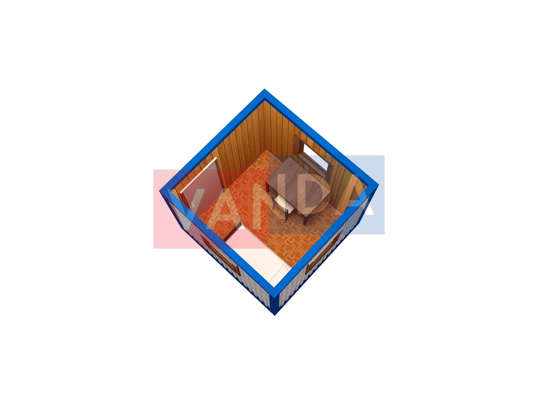 Металлическая бытовка без тамбура 5,85 x 2,4 - Оргалит ДВП